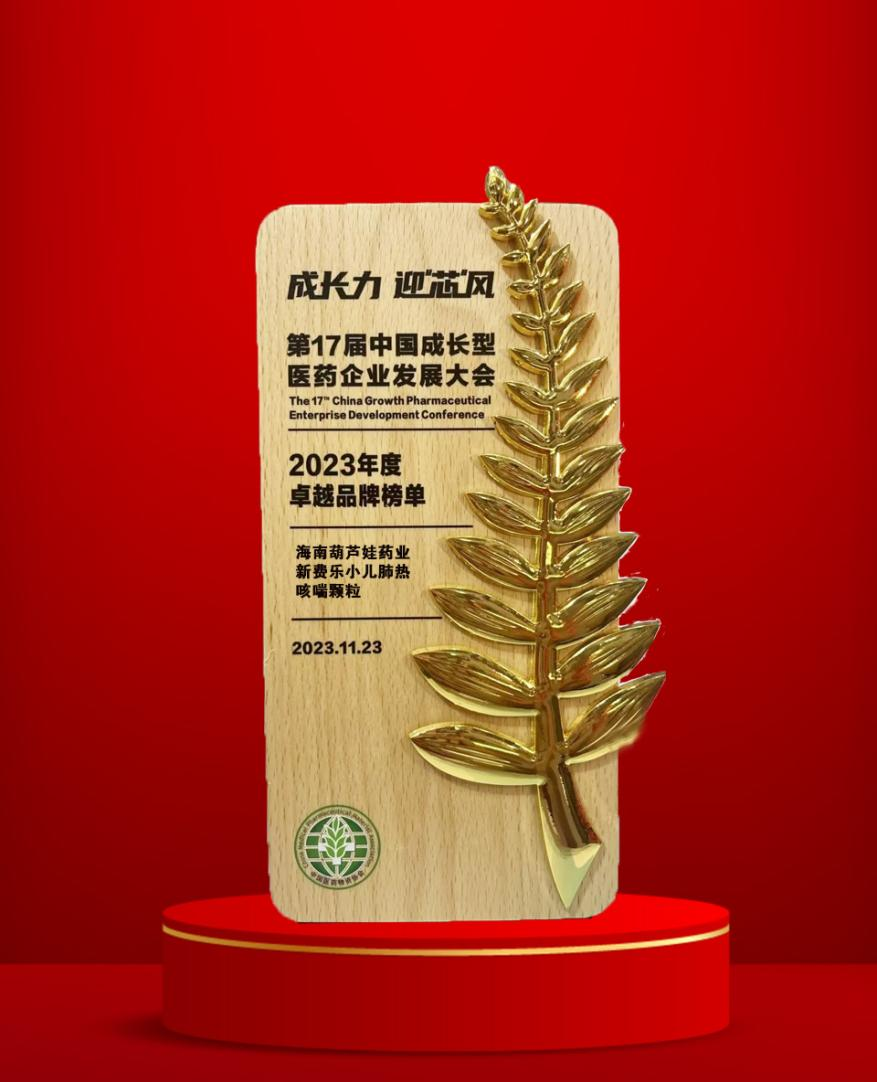 11月22日至25日,由中国医药物资协会和厦门市人民政府主办的第17届中国成长型医药企业发展大会在厦门拉开帷幕。会上,壹号娱乐药业集团党委书记、董事长刘景萍获得“金叶奖·2023年度医药行业风云人物奖”,集团旗下产品新费乐®小儿肺热咳喘颗粒荣膺“2023年度卓越品牌奖”。