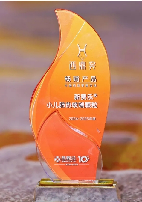 壹号娱乐药业集团旗下小儿肺热咳喘颗粒荣获“2024-2025年度中国药品零售市场畅销产品”奖